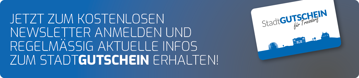 Erhalten Sie regelmäßig Informationen, Angebote und Aktionen zum StadtGUTSCHEIN für Troisdorf & APP.